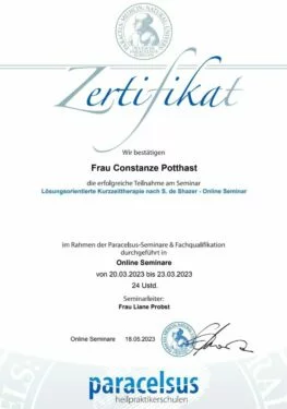 Ich bin Constanze Potthast, Heilpraktikerin beschränkt auf das Gebiet der Psychotherapie.